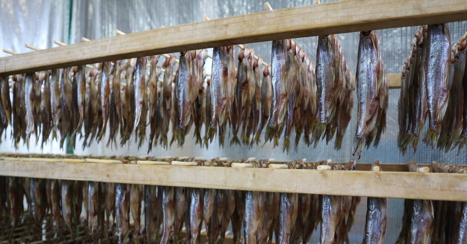 また、「本ししゃも」の漁期は毎年10月~11月半ばと非常に短く、この短い中でも特においしい時期の見極めも重要です。買い付けたあとに「手振り塩」を行い、一晩寝かして、翌日塩を落とすために水洗い。串に刺して再度振り洗いして、乾燥させる…。取得しなければならない技術は数多くあります。(田中さん)