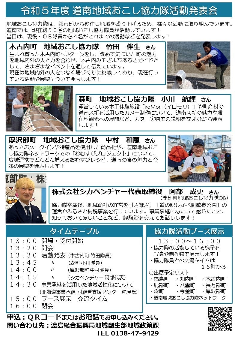 「道南地域おこし協力隊活動発表会」を2月20日に初開催します!