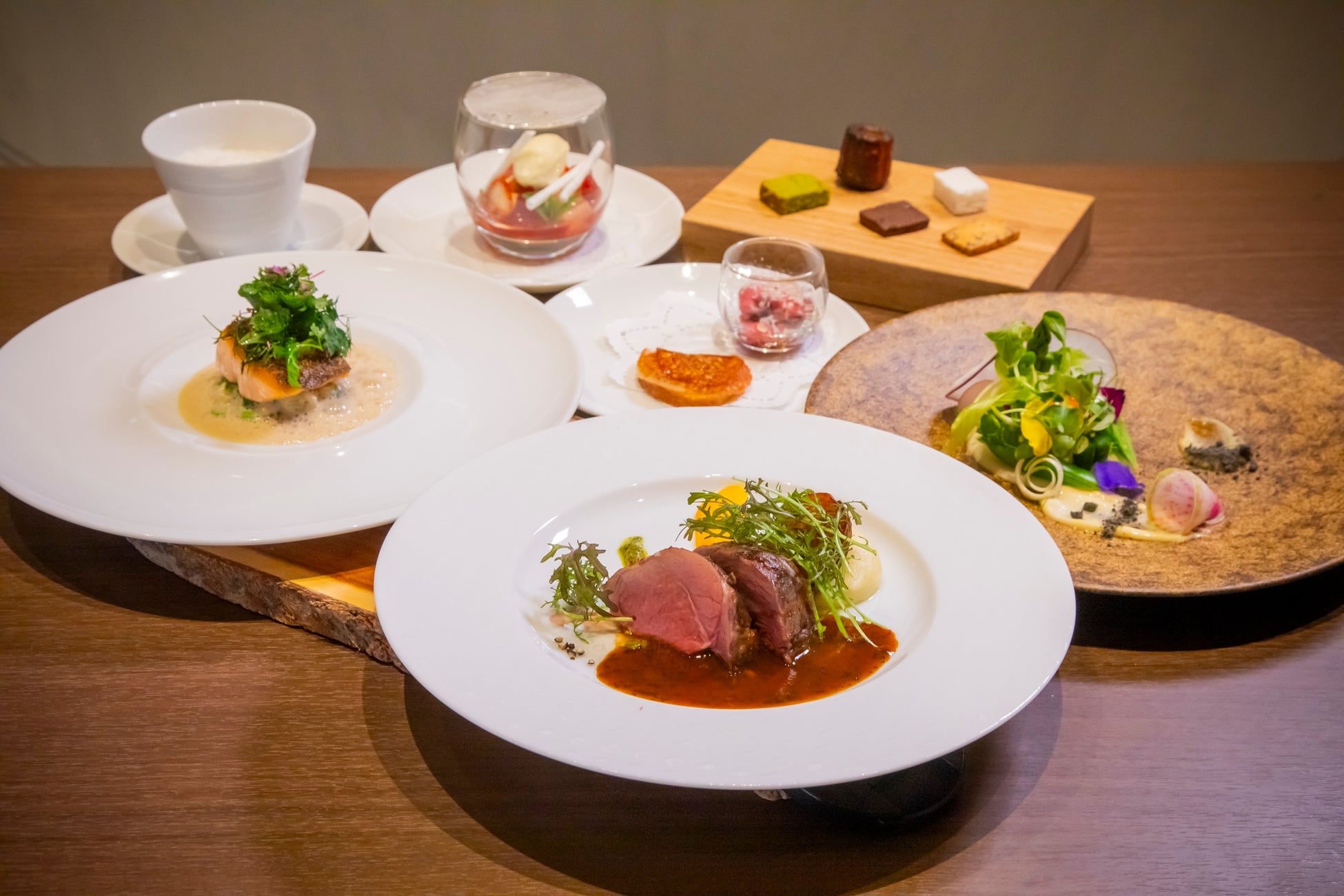 映画『そらのレストラン』鑑賞後、プレミアチケットを手にした観客は札幌を一望するフレンチレストラン「ヌーベルプース大倉山」へ移動。「そらのレストラン」のモデルにもなったせたな町と今金町で自然栽培やオーガニック農法を採用している生産者ユニット「やまの会」、そこから提供された希少な食材も使用したディナーと道産ワインの夕べを心ゆくまで楽しみました。劇中に登場する、1日だけのレストランを再現したかのようなプレミアムなひとときで、このためだけに考案されたコース料理が提供されました。またゲストとして、食材を提供した「やまの会」より冨樫一仁さん、村上健吾さんが登場。ヌーベルプース大倉山の荒木隆宏シェフとのトークセッションの中、なんとサプライズゲストとして大泉洋さん、本上まなみさんがTOHOシネマズすすきのから駆けつけました。