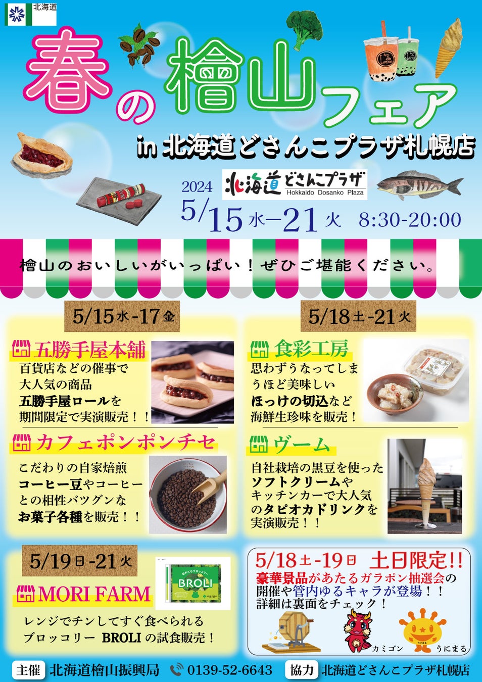 北海道檜山振興局では、管内の地域産品の認知度向上及び販路拡大を図るため、道の公式アンテナショップ「北海道どさんこプラザ札幌店」において、春の檜山フェアを開催します。
