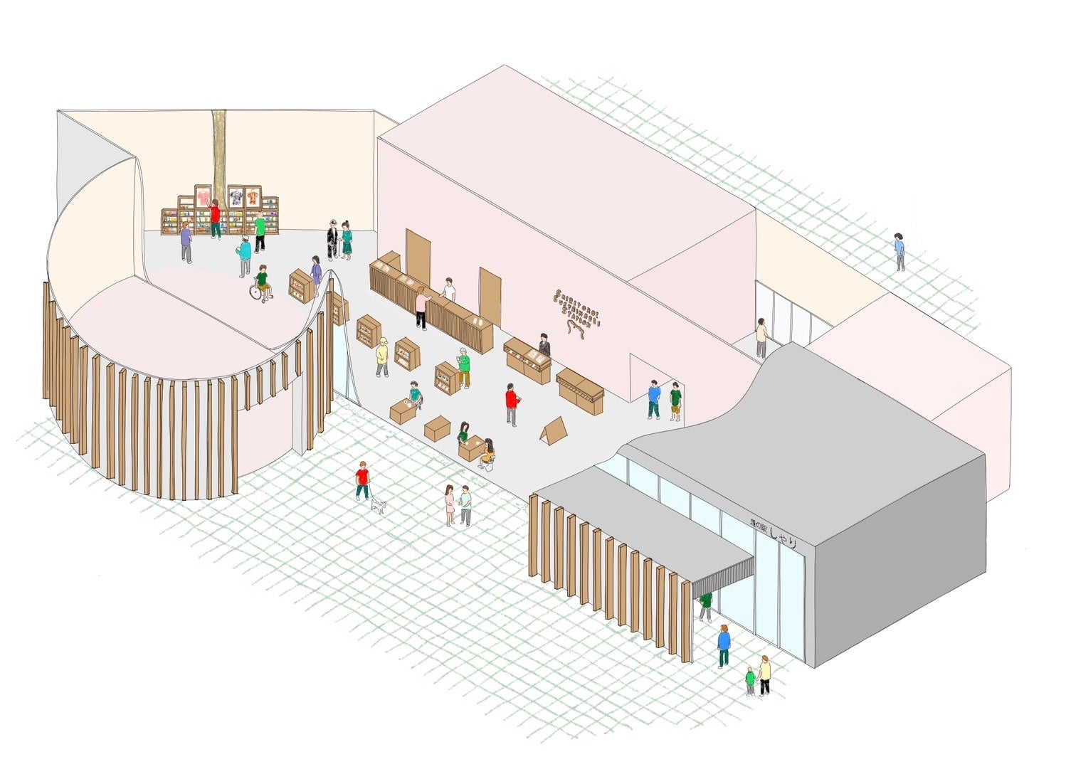 空間・什器のデザイン設計は、斜里町を拠点とし多岐にわたる制作活動をおこなう「北暦」が、施工は、同じく斜里町を拠点とし道産木材と土で住宅を作る「小坂建築」が担当しており、『COBAKO』に込められた「皆で作る」の第一歩として、地域に根ざして活動するチームとタッグを組み、空間づくりをおこなっています。