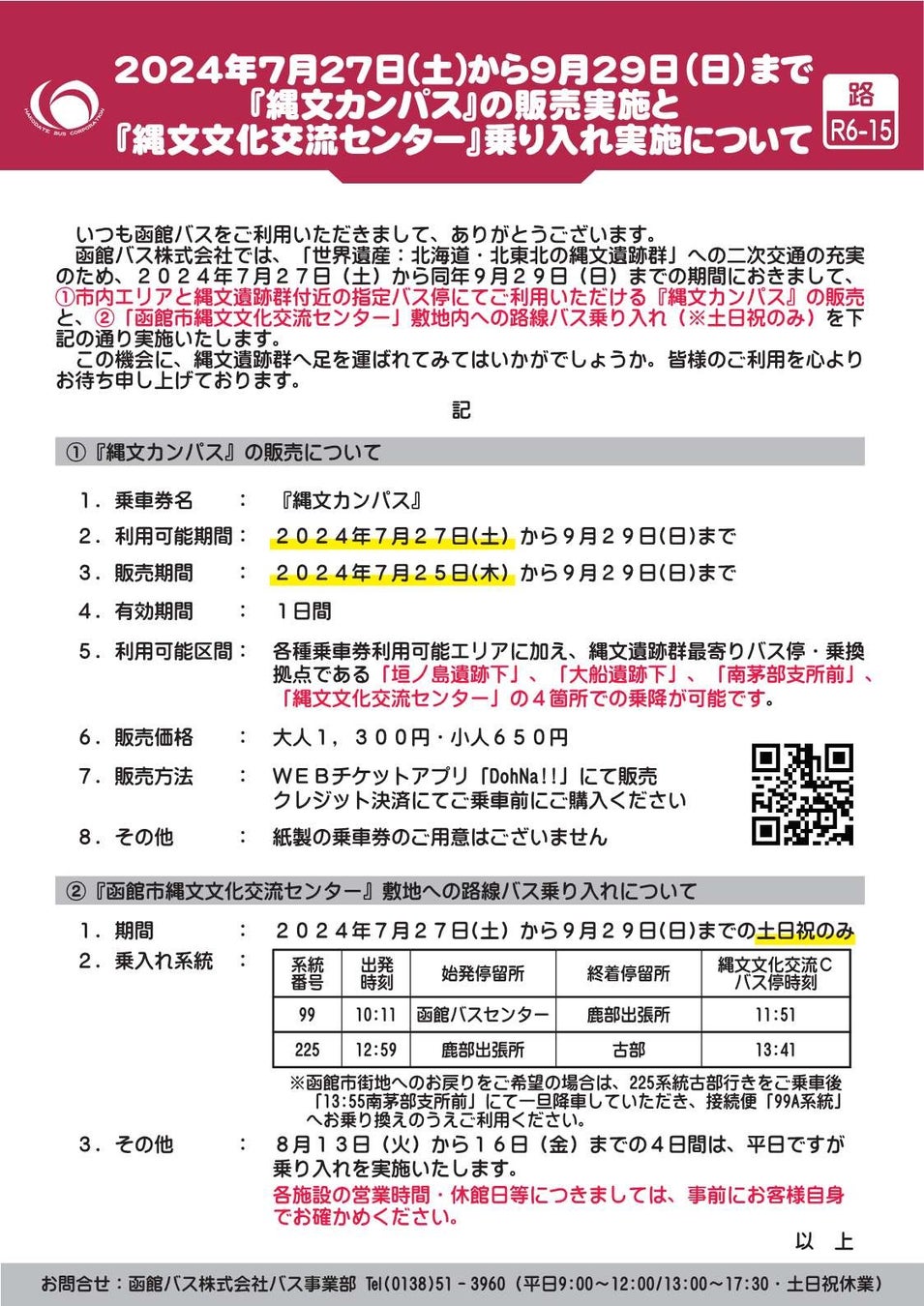 縄文カンバス販売及び縄文文化交流センター乗り入れの実施について【函館バス(株)】