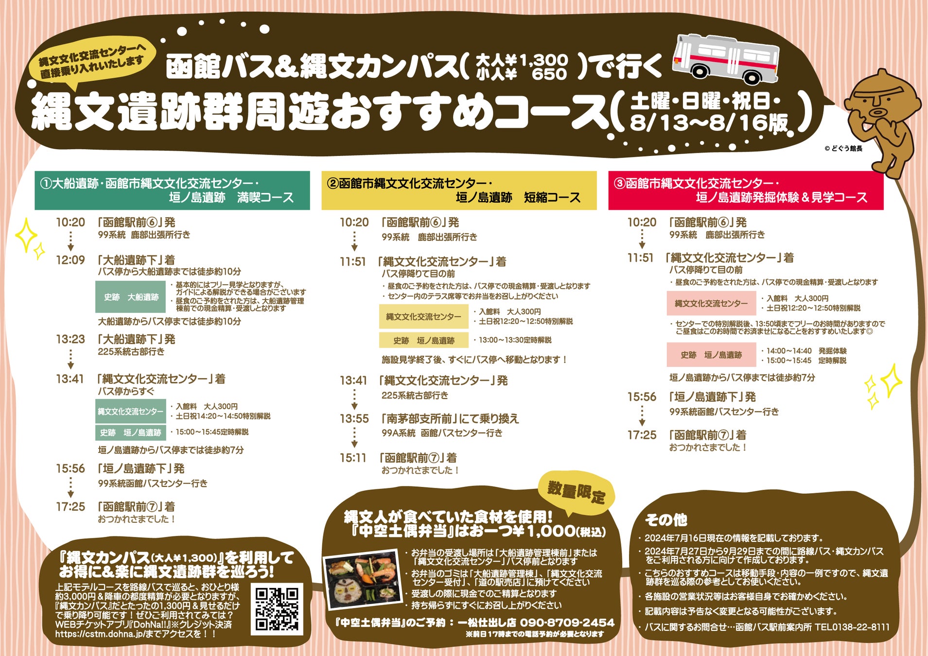 3 縄文カンパスで行く縄文遺跡群周遊おすすめコースの紹介及び中空土偶弁当の予約販売・配達について(数量限定)