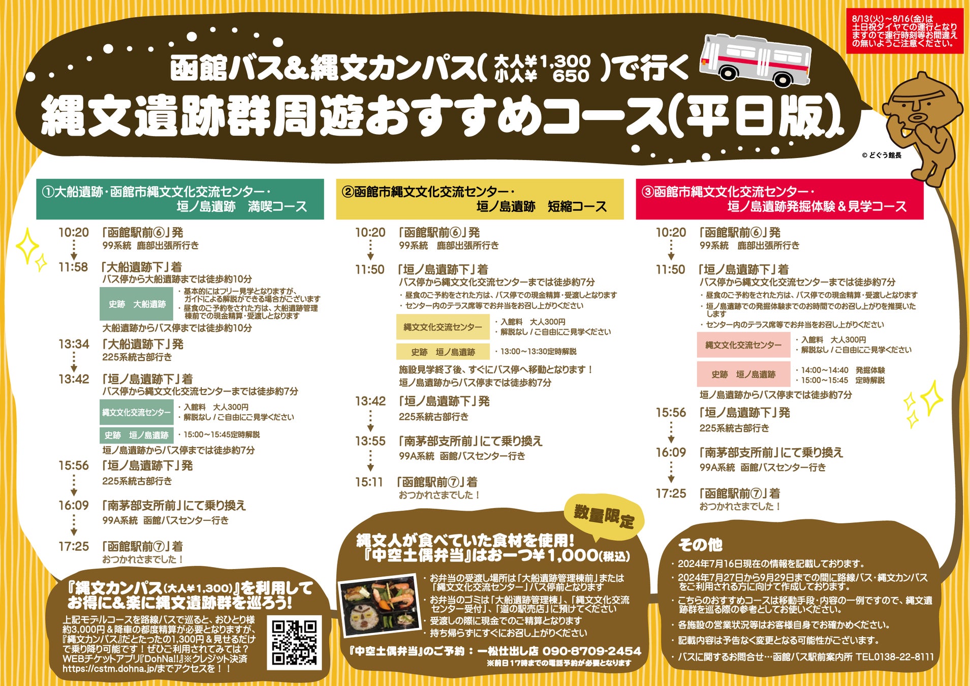 函館バス・縄文カンパスで行く縄文遺跡群周遊おすすめコース(土日祝日・8/13~8/16版)