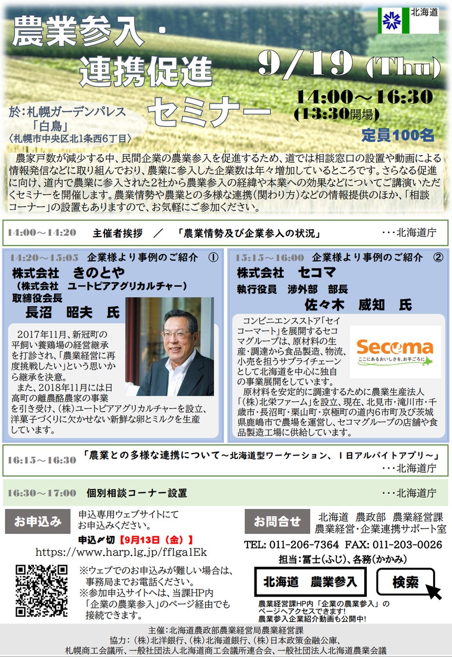 北海道庁農政部では農業を活かした企業の成長戦略を紹介するセミナーを開催します。