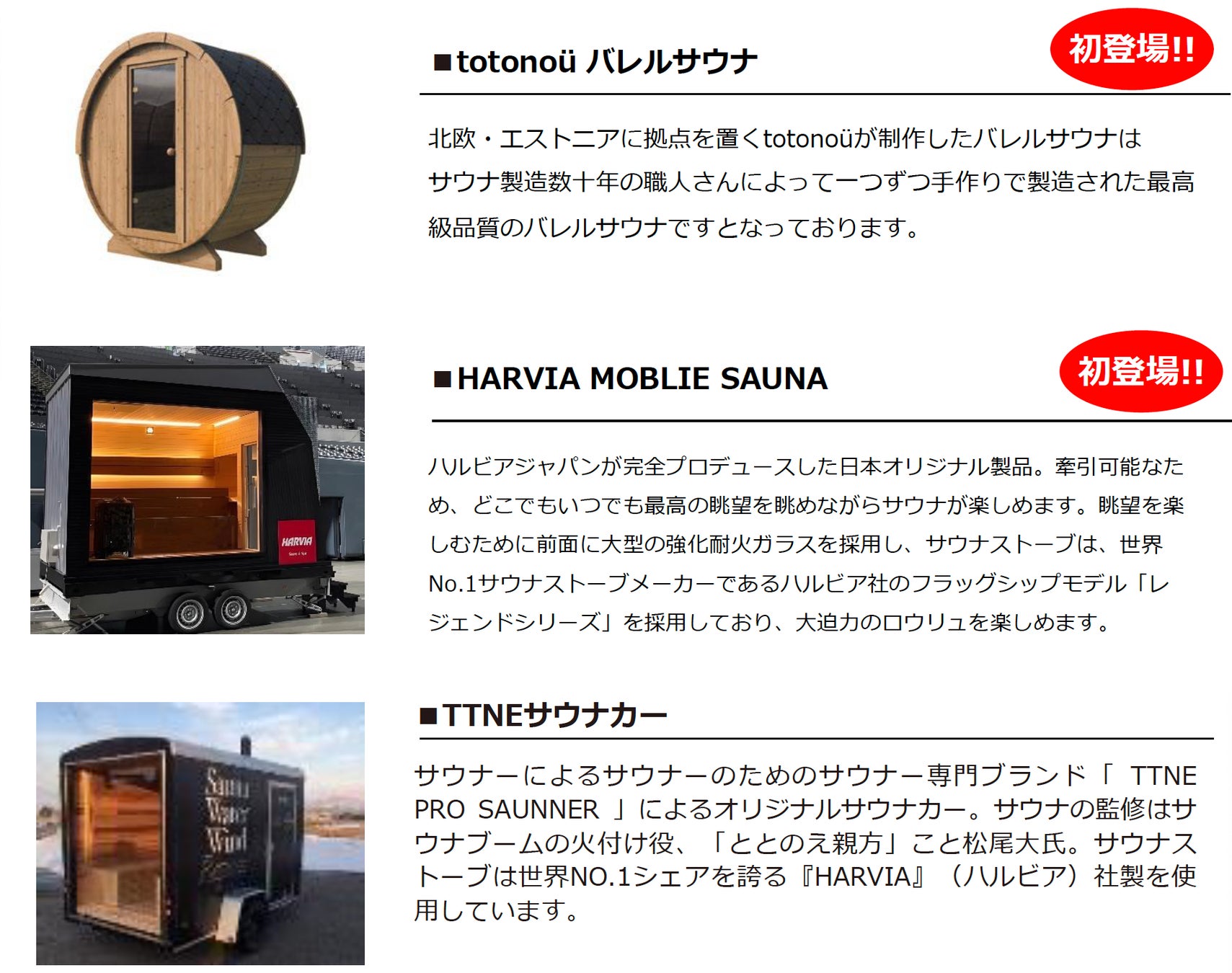 ◯会場設置予定のサウナ一覧
