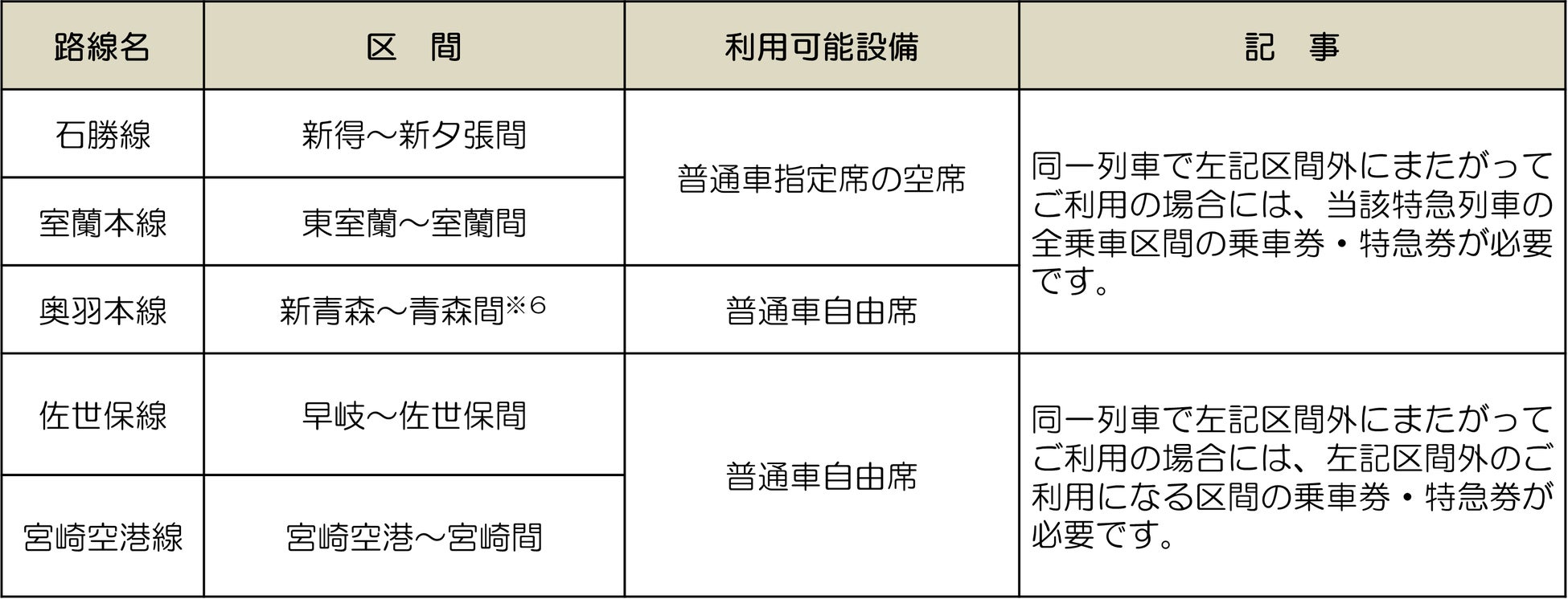 ※6「新青森~青森」間相互発着に限り、全車指定席の普通・快速列車の普通車の空席も利用できます。