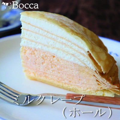 北海道伊達市のレストラン「洋麺茶屋 牧家」の人気デザートメニューです。地元の良質な生乳である「だて牛乳」を使用した特製カスタードクリームと、北海道産生クリームをしっとりとしたクレープ生地に重ねて、ふわっふわに仕立てました。