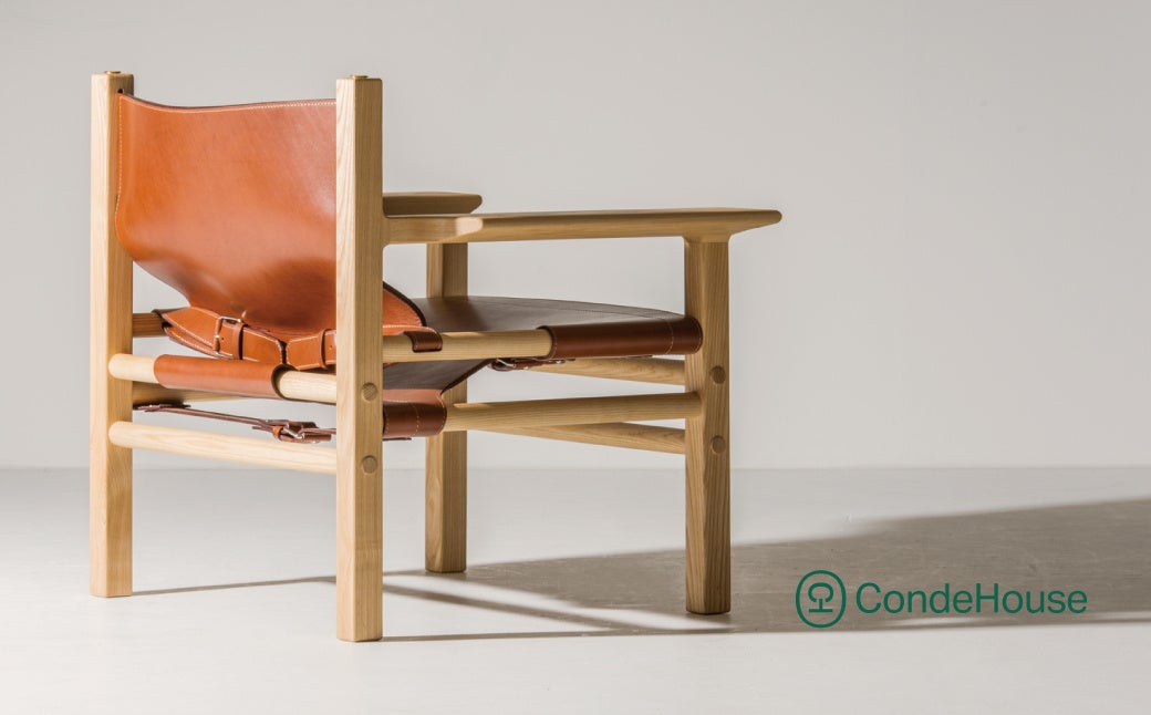北海道当麻町産のミズナラ材と「ソメスサドル」の一枚ものの厚革を組み合わせた、特別仕様のイージーチェアーとオットマンのセットが3セット限定でふるさとチョイスに再登場!