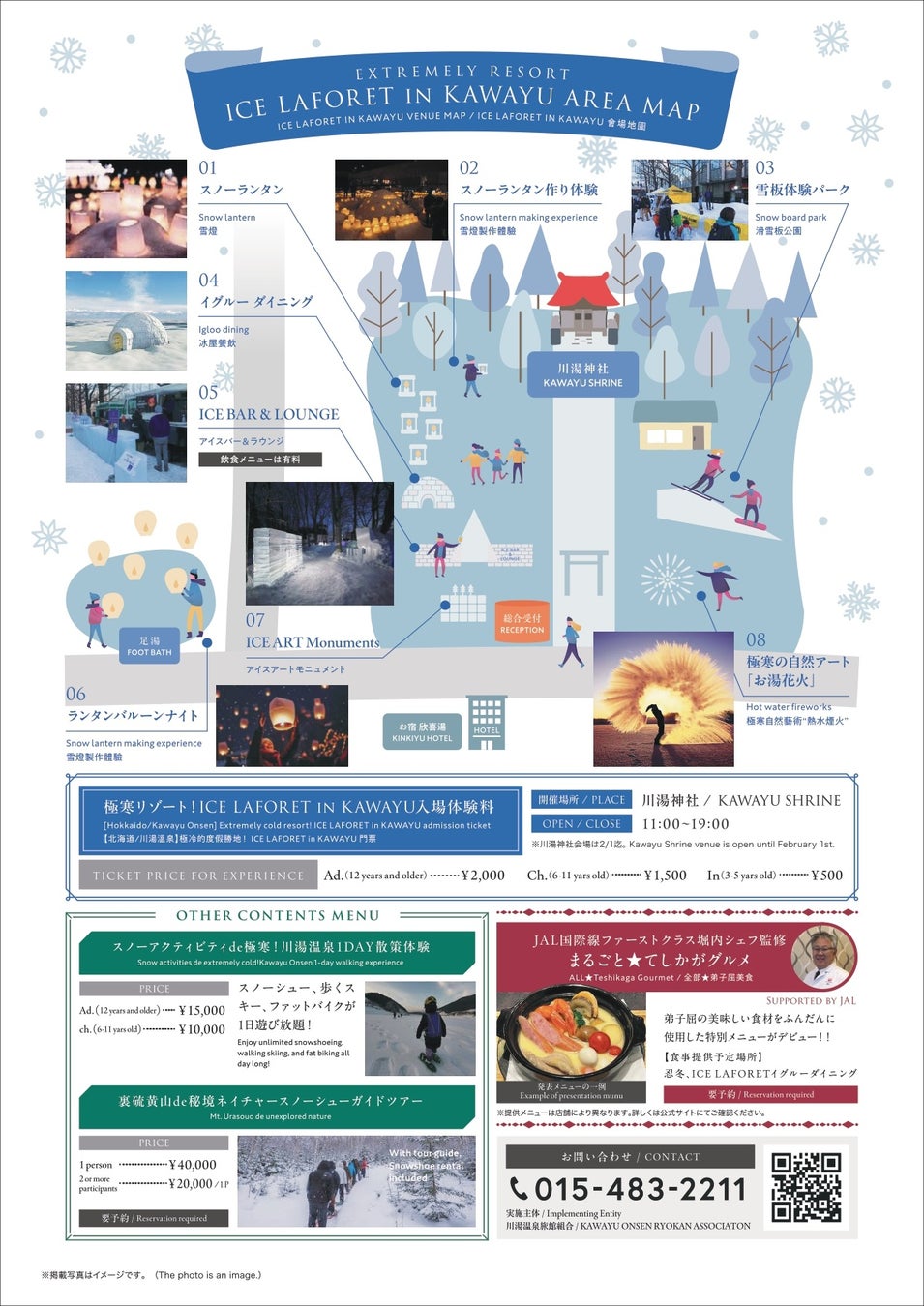 会場にはスノーランタン・イグルーダイニング・アイスバーや雪上サーフィン体験など、冬ならではの体験を楽しめます。