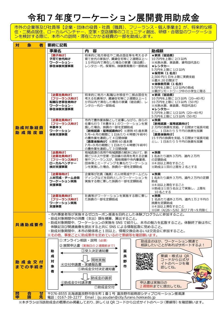 北海道富良野市(所在地:富良野市弥生町1番1号 市長 北 猛俊)は、令和7年度のワーケーション助成金制度「ワーケーション展開費用助成金」の受付を4月1日から開始しました。市外の企業社員やフリーランスが同市内でワーケーションを行う際に、旅費等の一部を助成します。実施期間は2026年3月末までとしていますが、予算に達すると終了となります。