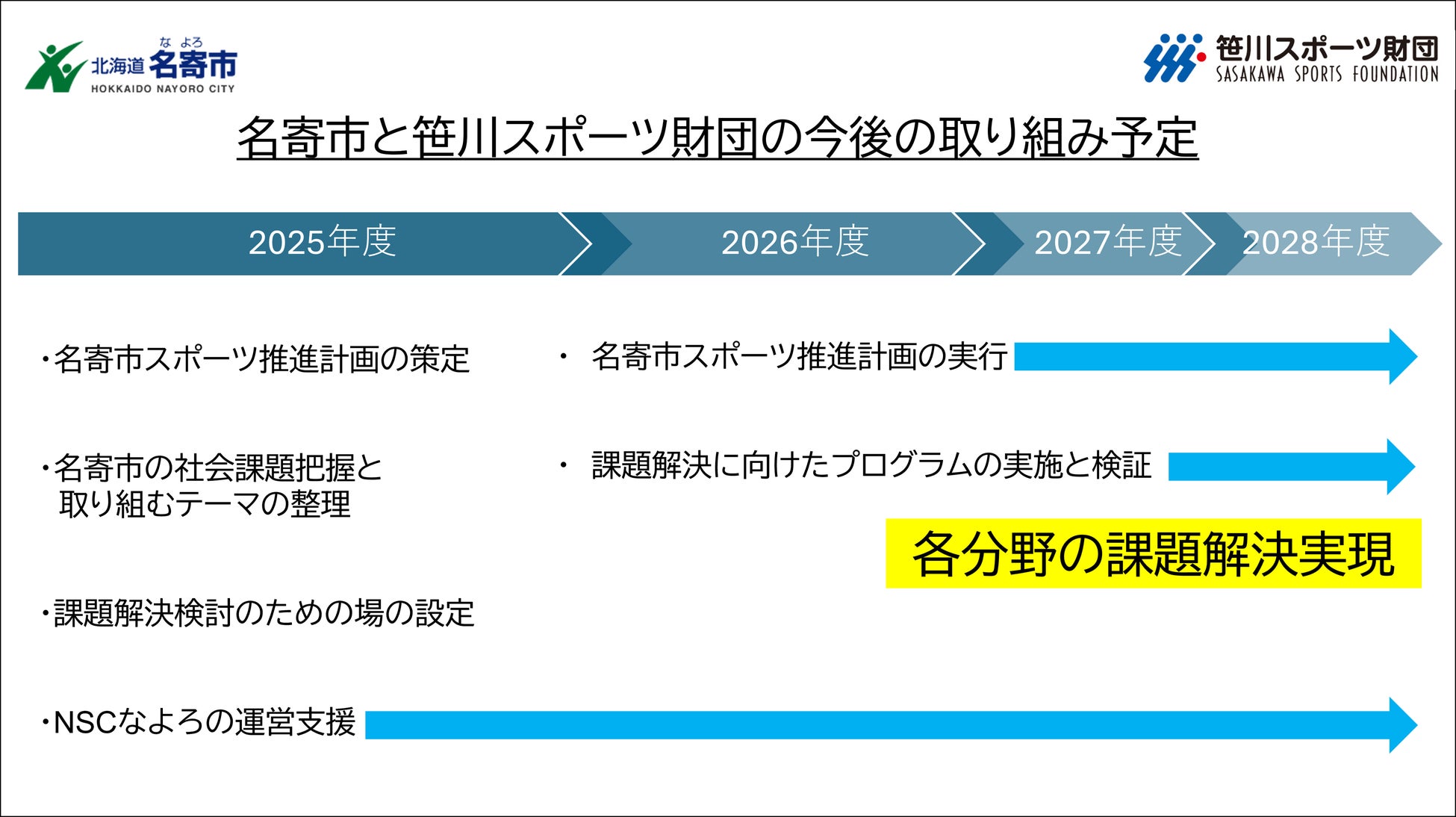 2025年度は、名寄市スポーツ推進計画の策定に加え、名寄市が抱える社会課題の把握、および重点的に取り組むテーマの整理・開発を進めてまいります。