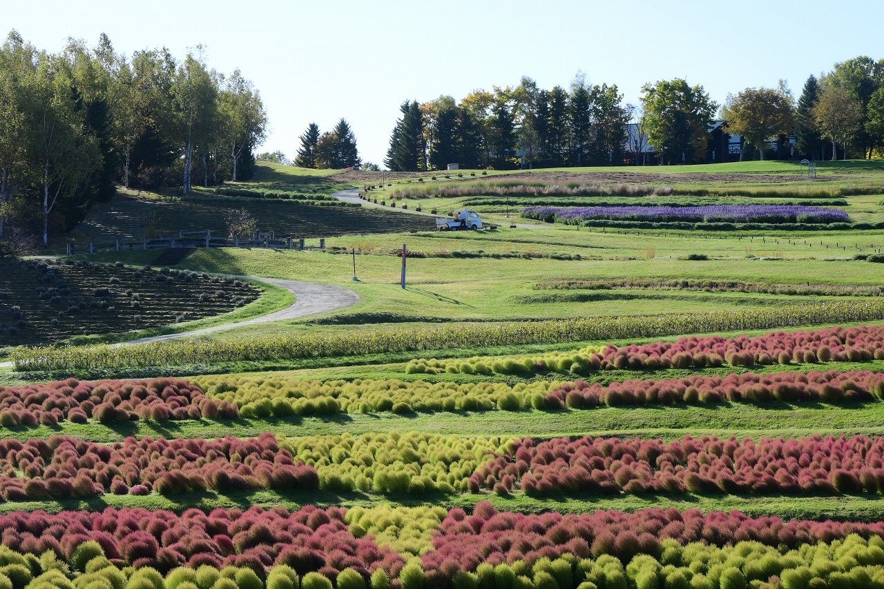 国営滝野すずらん丘陵公園(札幌市南区滝野247)では、紅葉の時期に合わせて【たきの紅葉まつり】を開催しています。10/14現在、もこもこのコキアが赤く染まり、紅葉の見頃を迎えています。