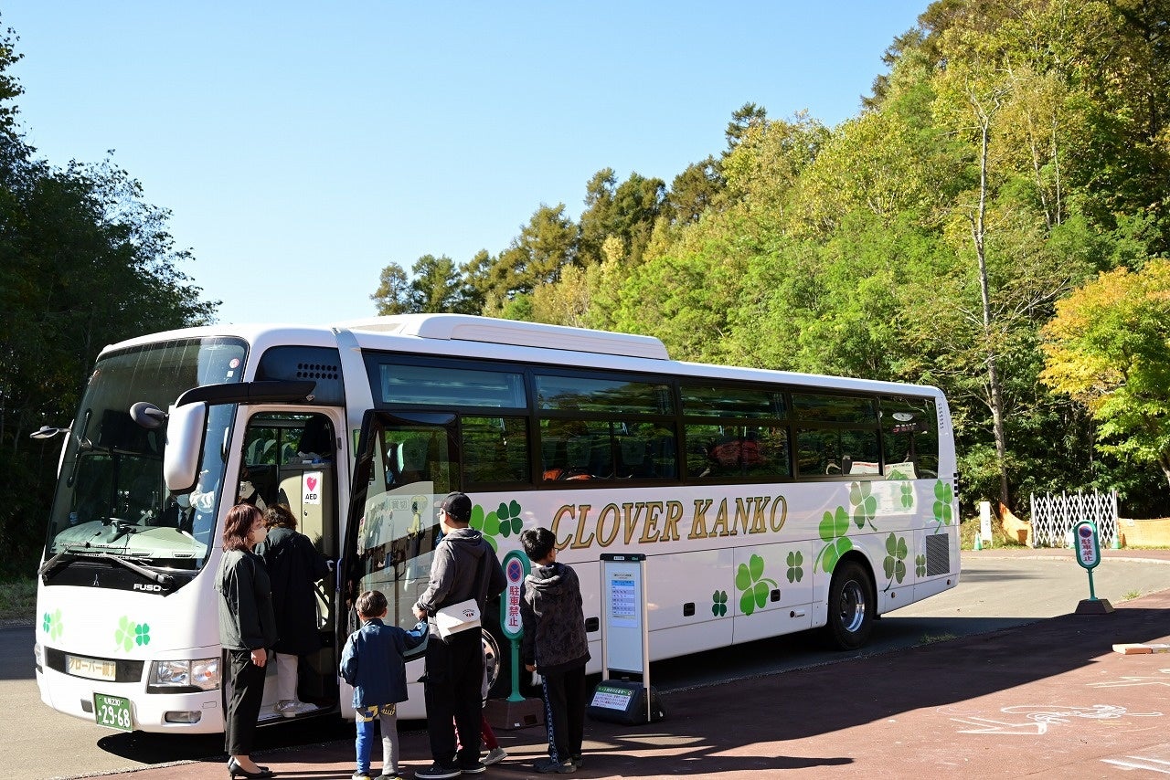 滝野の森ゾーンで迎えた紅葉シーズンにあわせて、東口(カントリーハウス前)⇔滝野の森ゾーン(森の情報館)を結ぶ園内シャトルバスを運行します。乗車運賃は無料でご利用いただけます。