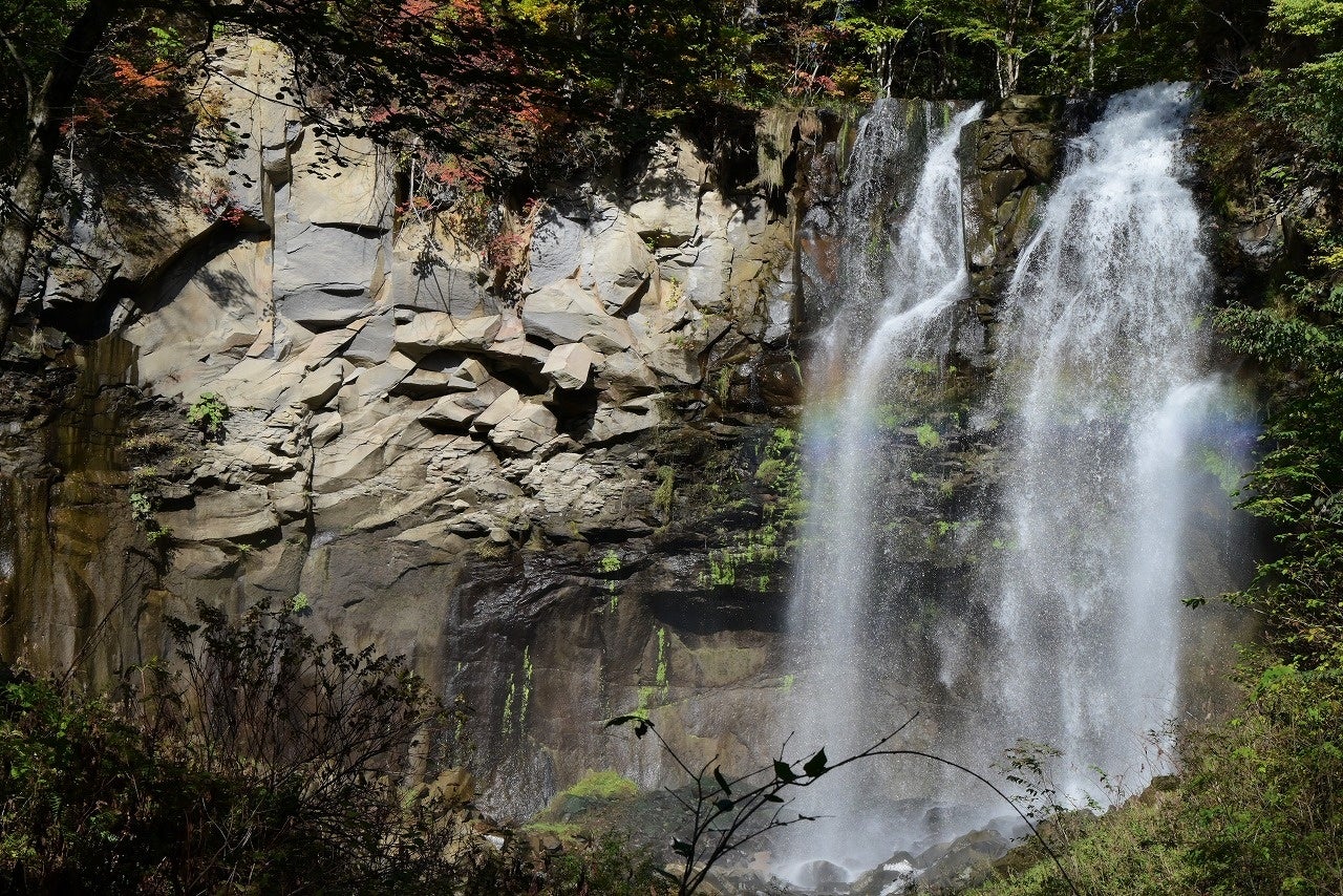 10月上旬から下旬にかけての開園直後の早朝の晴天日という条件がそろった日は、「日本の滝百選」に選ばれた名瀑に美しい虹がかかる幻想的な景色を楽しめます。