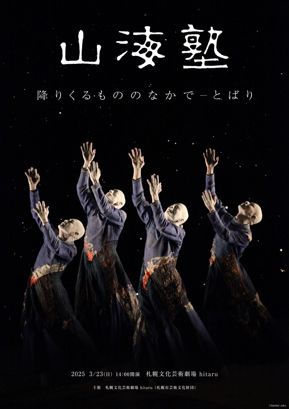 1975年に主宰天児牛大により創設された舞踏カンパニー。1980年より海外公演を開始し、現在までに世界48カ国700都市以上で公演を行っている。1982年以降の作品はすべてパリ市立劇場との共同プロデュース。2002年『遥か彼方からの―ひびき』がローレンス・オリヴィエ賞最優秀新作ダンス作品賞を受賞。2006年『時のなかの時―とき』は朝日舞台芸術賞グランプリ及びキリンダンスサポートをダブル受賞。https://www.sankaijuku.com/