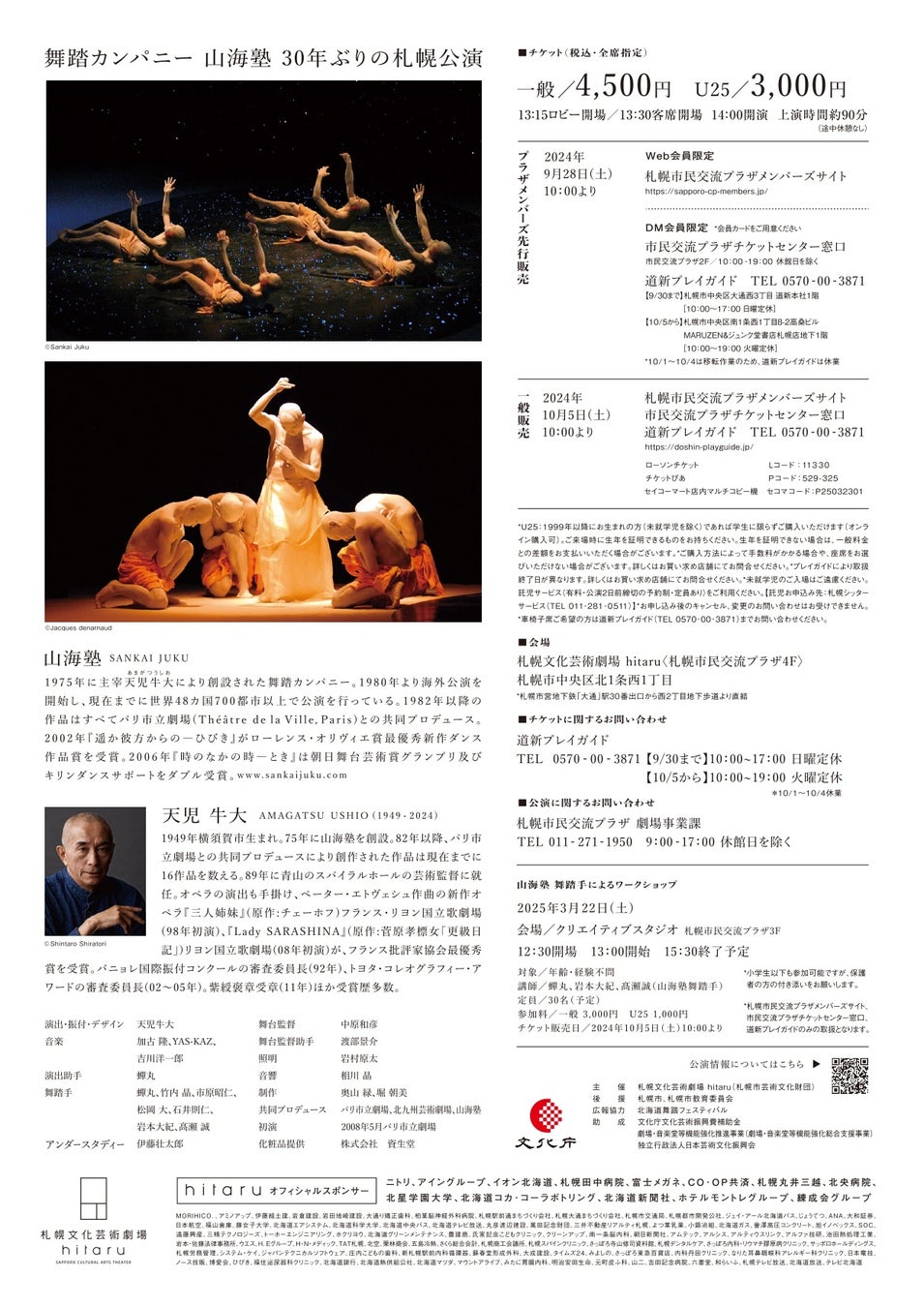 舞踏カンパニー山海塾 30年ぶりの札幌公演!