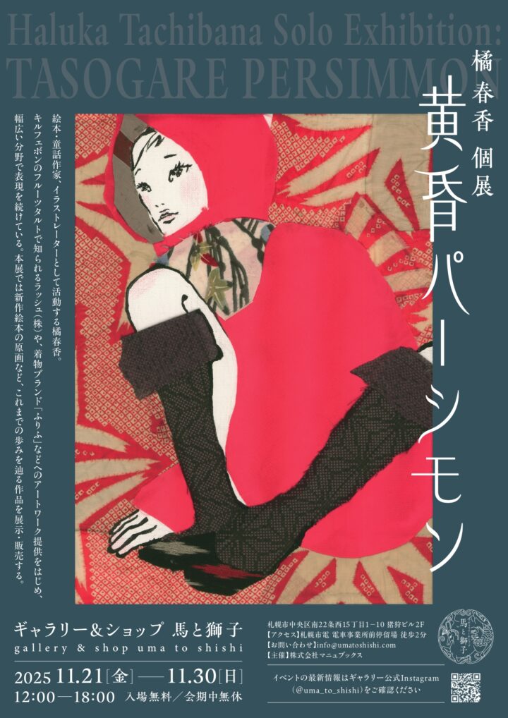 着物の端切れから生まれる新作アートを初公開 絵本作家・橘春香 個展「黄昏パーシモン」札幌で開催 3日間限定の似顔絵イベントも実施