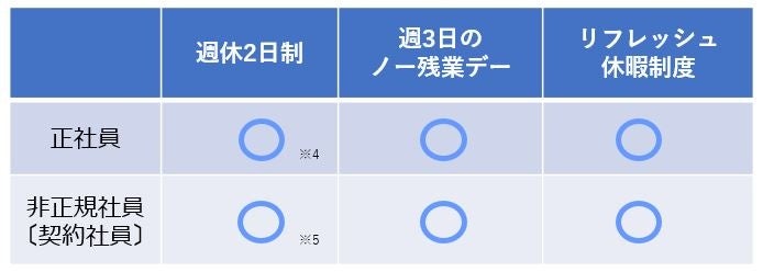 正社員・契約社員はジャパネットグループの就業ルールを適用し、「週休2日制」、「週3日のノー残業デー」、「最大16日間のリフレッシュ休暇制度」が利用できます。また、パート・アルバイト含む全従業員に対しても「月5回※3のランチ代サポート」などの福利厚生を充実させ、イキイキと働くことのできる環境で、持続的な雇用創出へとつなげてまいります。