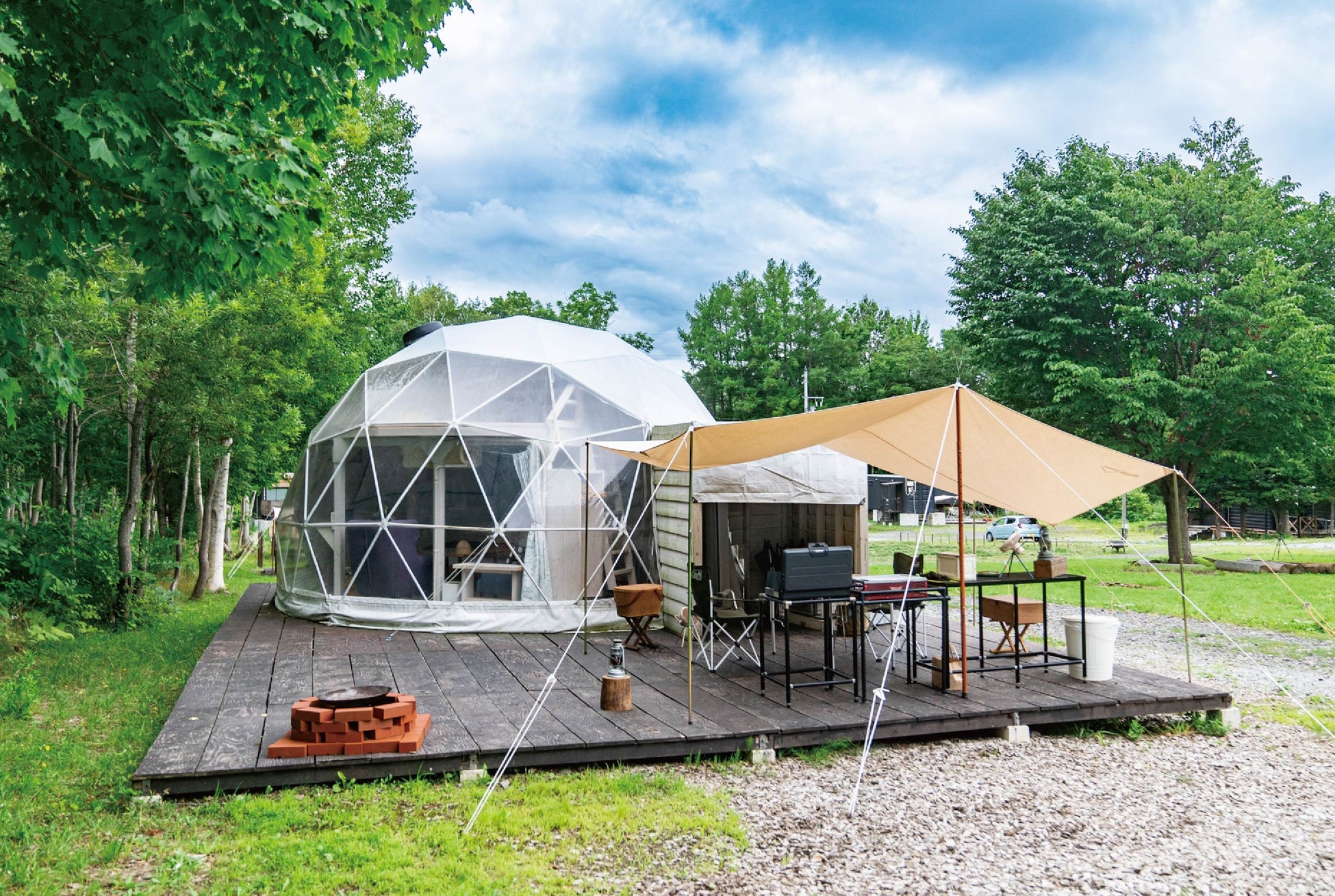 ビジネスキャンプ北海道の会場は、世界有数の観光地である北海道・ニセコの羊蹄山の麓に位置しています。夏でも爽やかな気候が特徴で、子どもたちはのびのびと活動でき、保護者の皆様は快適なひと時を過ごしていただけます。また、自然を楽しむ通常のテントに始まり、プロジェクター&エアコン付きのドームテント、専用サウナが付いた特殊なバンガローまで、高規格の設備が整っています。世界中の外国人観光客を唸らせるニセコの高級グランピング場を、贅沢に貸切にしました。