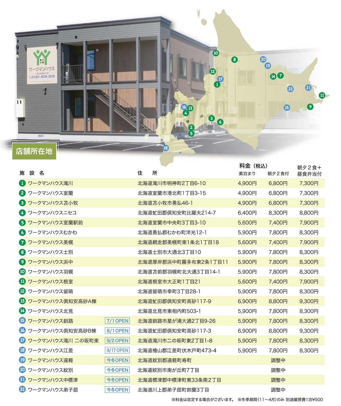 ワークマンハウス 店舗・料金一覧(2024年6月時点)