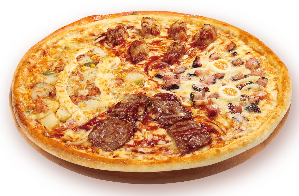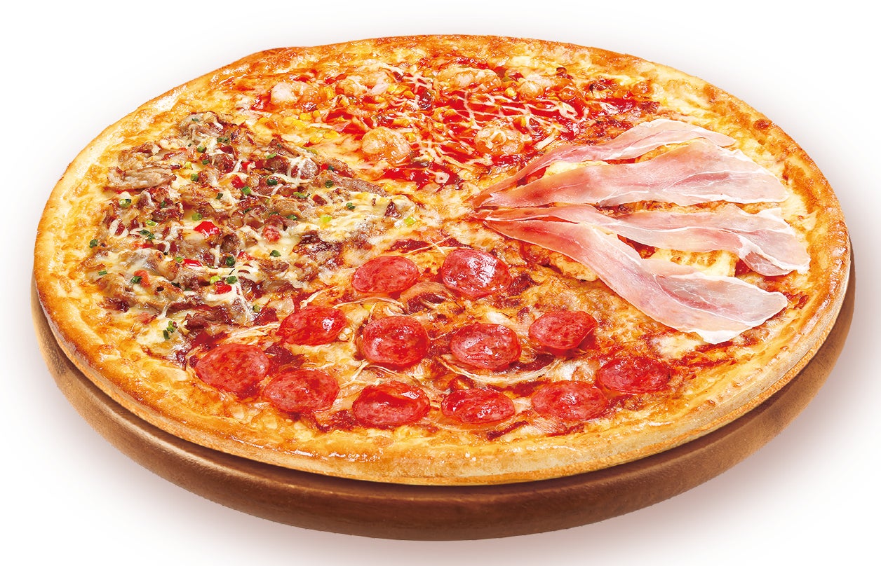 人気の4種のピザが1枚で楽しめるお得感はそのままに、特大サイズを豪快にお楽しみいただけます。