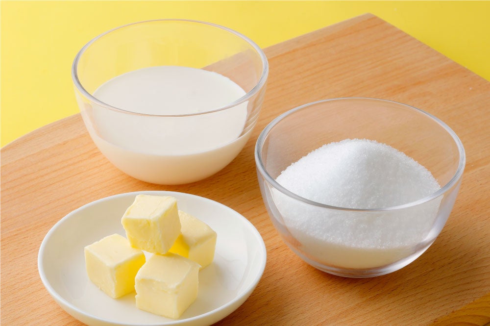 キャラメルの主な材料、バター、生クリーム、砂糖(てんさい糖)は北海道産を使用。てんさい糖はキャラメルにふさわしく、砂糖の中でもまろやかな甘さとコクがあるのが特徴です。