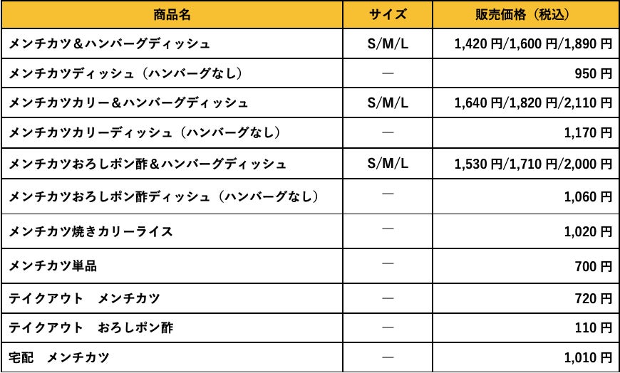 ※メンチカツ&ハンバーグディッシュ、メンチカツカリー&ハンバーグディッシュ、メンチカツおろしポン酢&ハンバーグディッシュは、ハンバーグにお好みでトッピングできます。(エッグ、おろしそ:¥110(税込)/チーズ(2本)、パイン:¥180(税込))