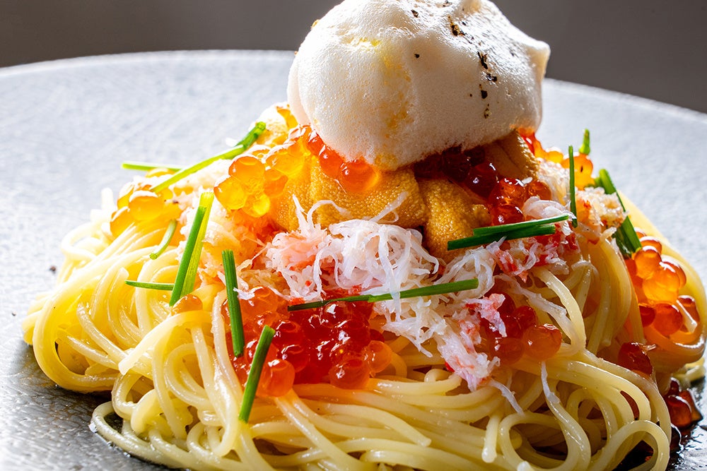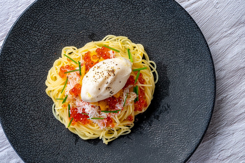 今年も暑い夏が予想される中、贅沢な味わいと鮮度を追求した一皿、「北海道産塩水ウニ・いくら・紅ズワイガニの冷製スパゲティ」をぜひお楽しみください。