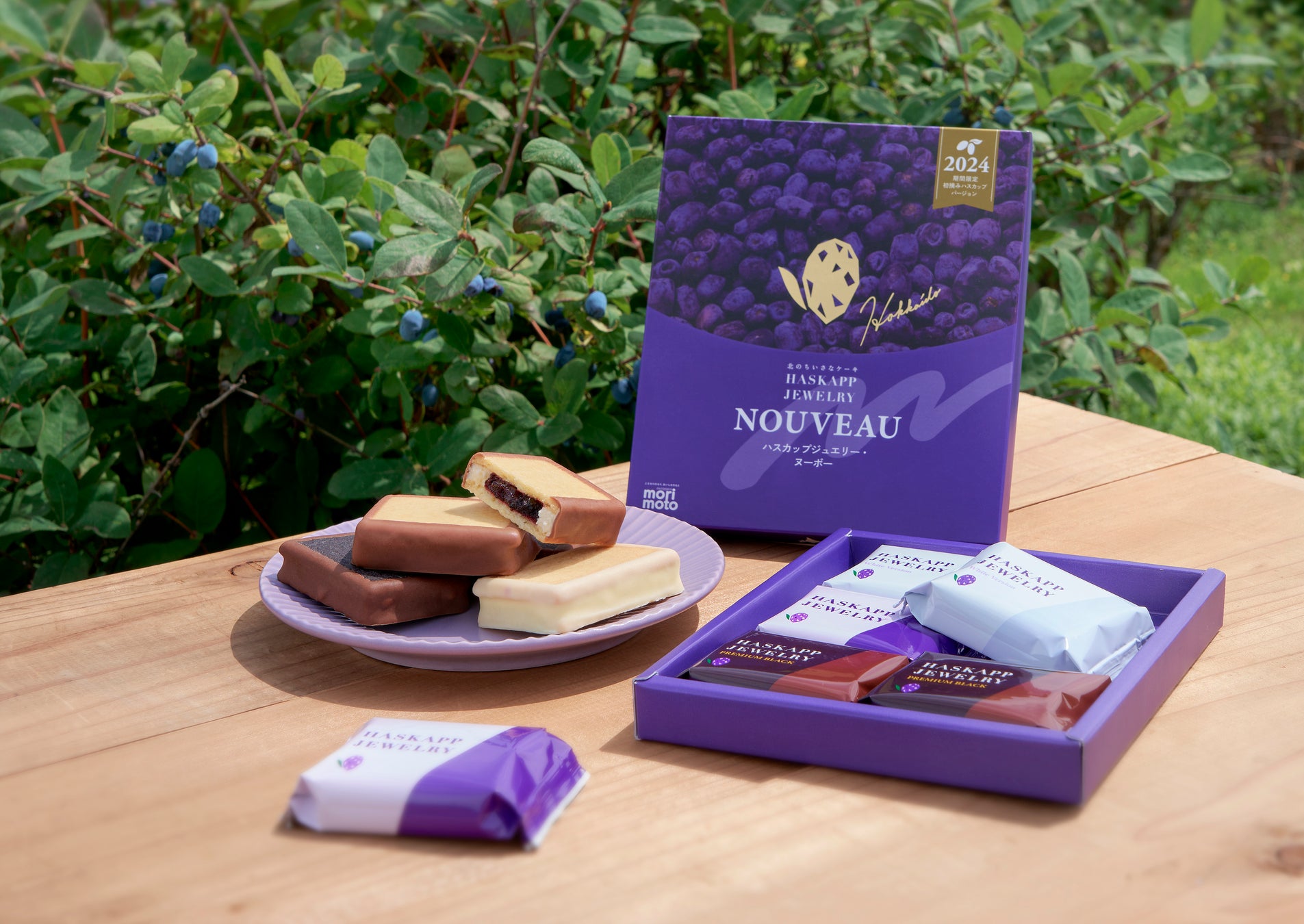 北海道の初夏の短い期間に収穫される「ハスカップ」は、希少性の高さと美しい小さな紫色の見た目から、まるで紫に光る原石のようです。「もりのヌーボー」では、生産者様がひと粒ひと粒、丁寧に摘んだ実の甘酸っぱさをお菓子にとじ込めた「ハスカップジュエリー・ヌーボー」を、期間限定で販売します。北海道の爽やかな夏を彩る1年に1度だけの穫れたての味わいをお楽しみください。
