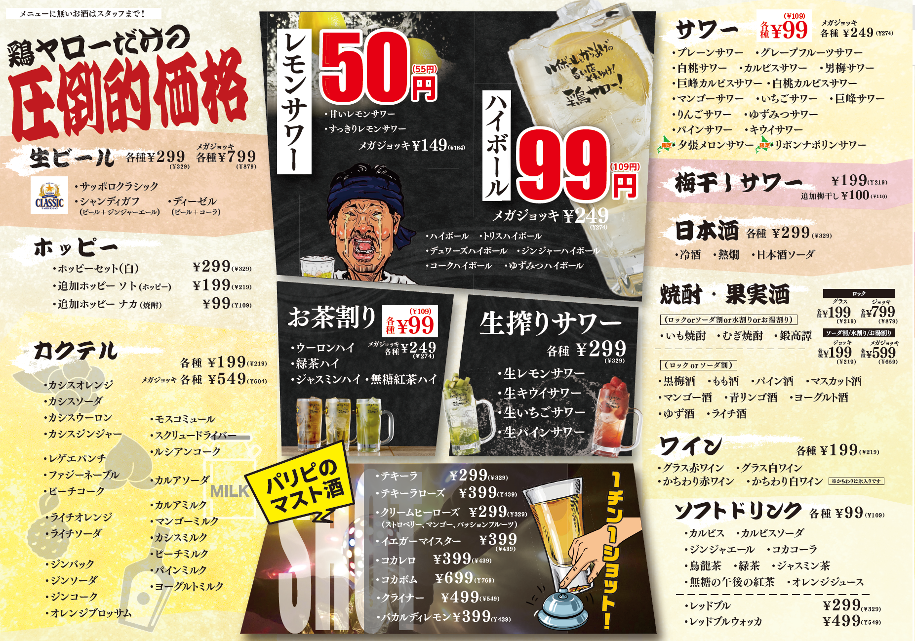 とにかく安く飲みたいという時には、鶏ヤローにお任せください!