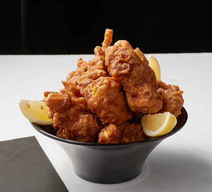 こぶしサイズの唐揚げは⾷べ応え満点です。