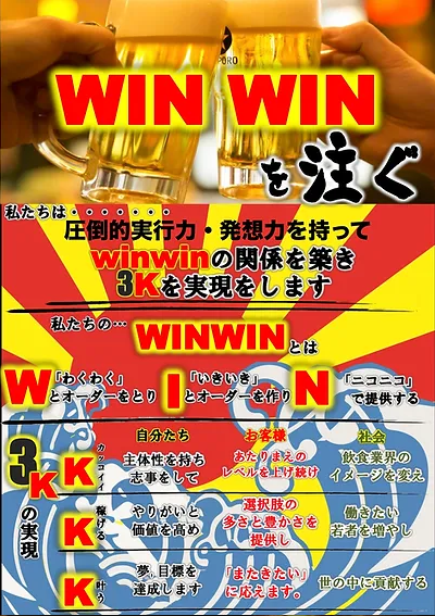 それは【WINWIN=3K】この企業理念こそ鶏ヤローを作った意義であり叶えたい⽬標である。