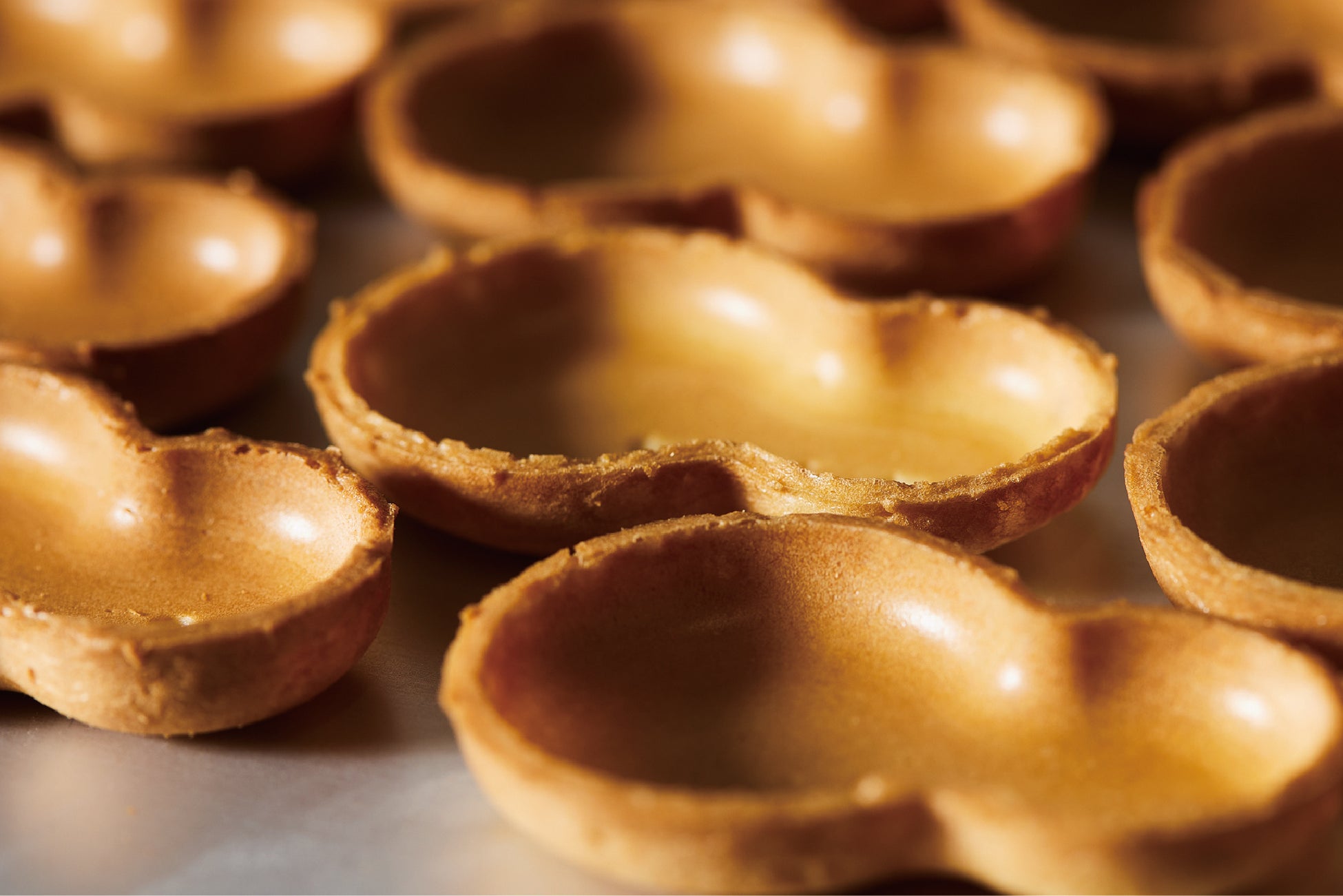 チョコレートと相性の良い薄さと焼き加減を追求し、道産牛乳をたっぷり使用した特製クッキー生地を開発しました。この生地をゆきだるま型に流し込み、直火で丁寧に挟み焼きすることで、サクサクの仕上がりになります。