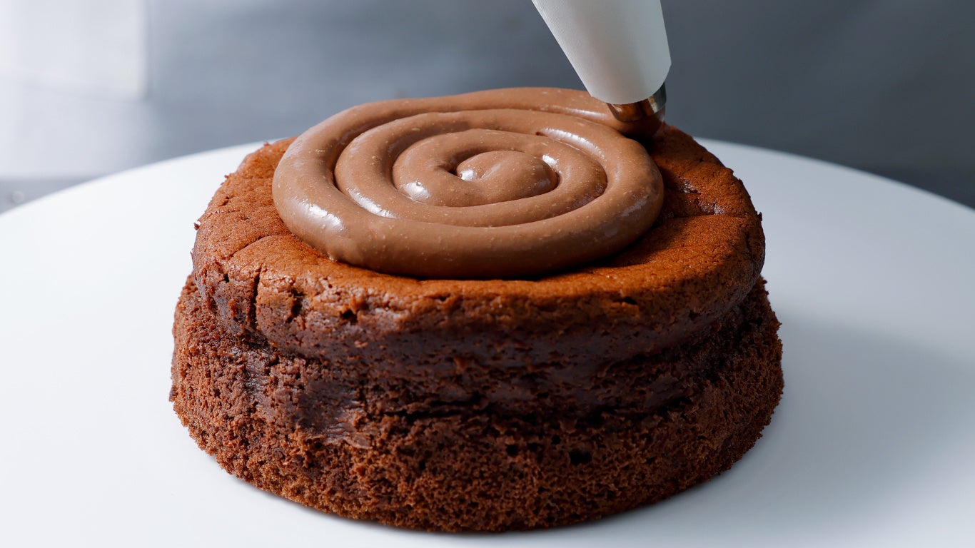 ガトーショコラの味わいに合わせて作った軽やかな生チョコクリームを丸くたっぷりと絞りました。