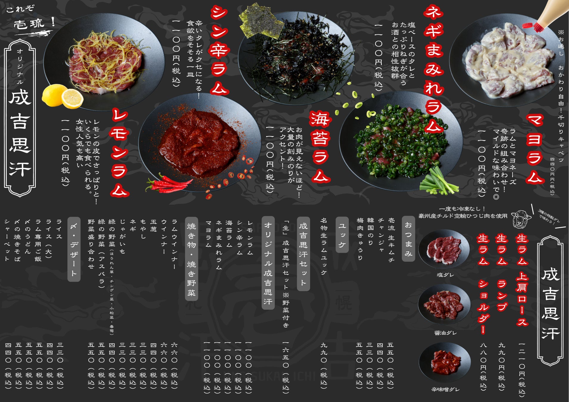 「札幌成吉思汗壱」では、レモンラム・シン辛ラム・海苔ラム・ネギまみれラム・マヨラムなど