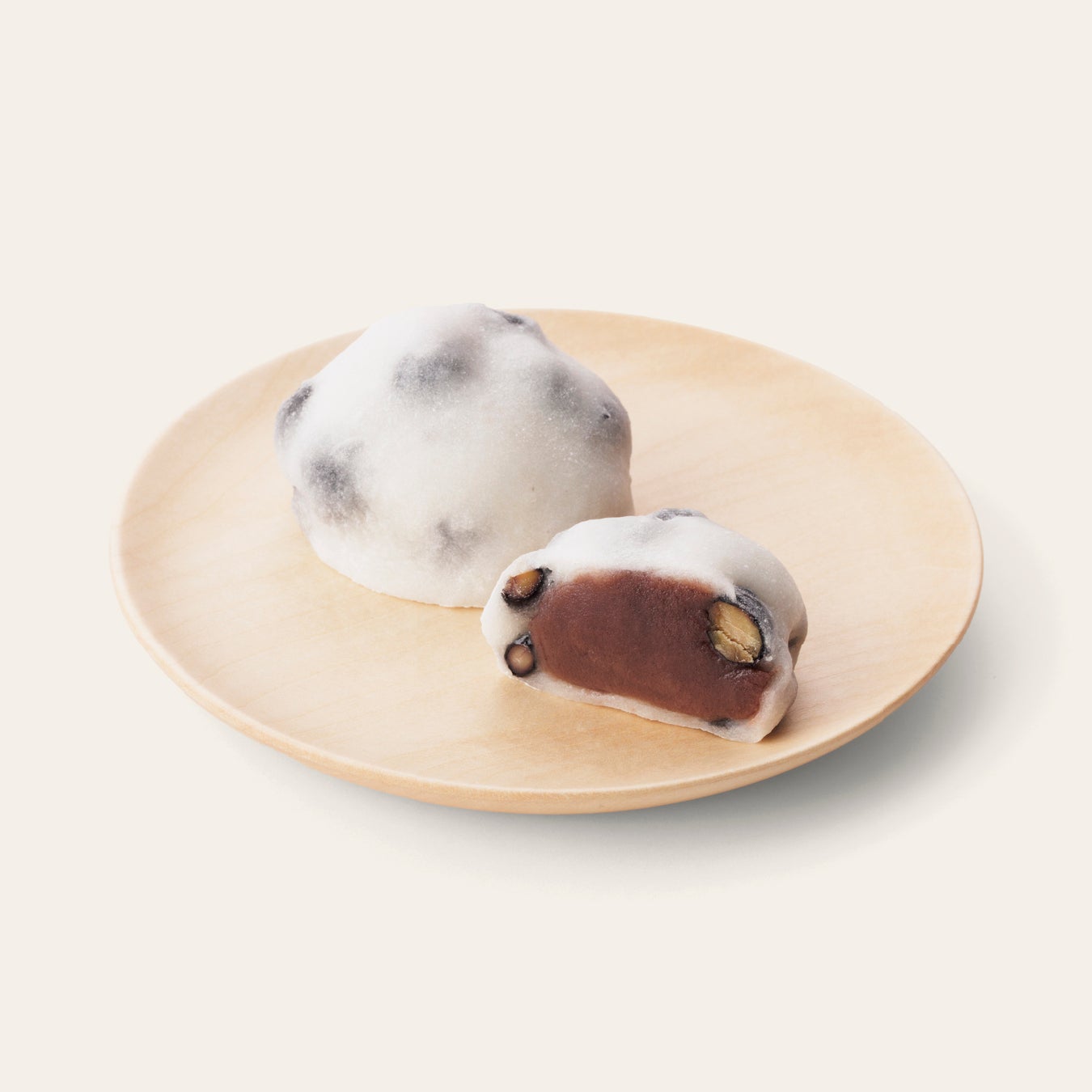 十勝産の光黒豆がアクセントになったもちもち生地で包んだのは、風味豊かな小豆ミルクあん。