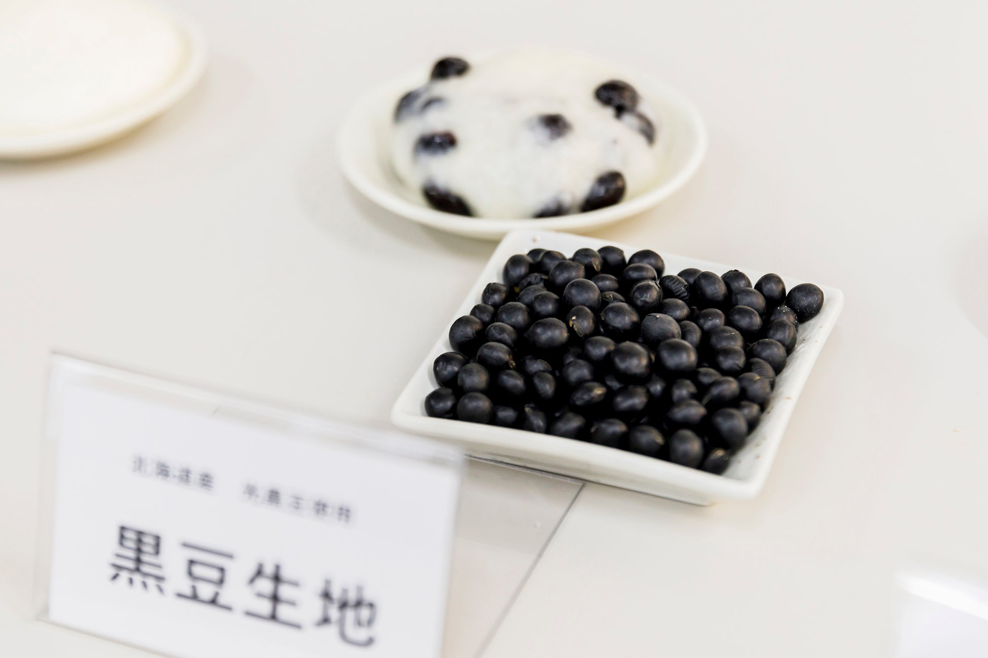 新商品のベースに選んだのは、以前期間限定で販売していた「塩黒豆大福」。十勝産光黒豆のほどよい塩味が餅やあんこのおいしさを引き立てると大人気だったため、今回リメイクすることに決めました。開発を進めるうちに、ふと担当者が口にした「黒豆が牛の模様に見える」という一言に一同は大盛り上がり!見た目からも北海道らしさを感じられると、開発にますます気合が入ります。