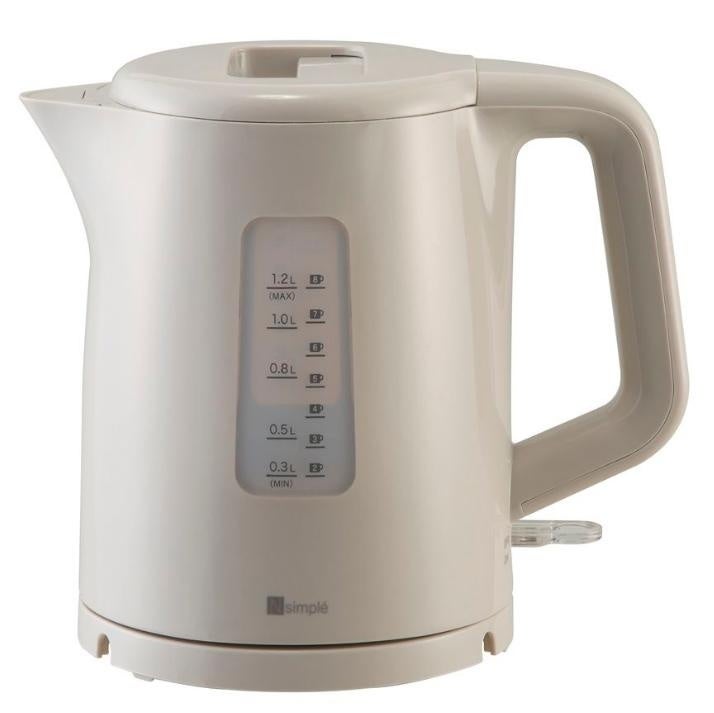 スイッチを下げるだけの簡単操作で使いやすい、シンプルなデザインの電気ケトル。