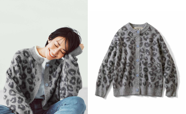 ユキヒョウの赤ちゃんの毛並みをイメージしたやや毛足の短いシャギーニットカーディガン。やわらかな印象のにじんだような柄や産毛のようなほわほわした毛並み、赤ちゃんの瞳の色をイメージしたブルーグレーのマーブルボタンなど、細部までユキヒョウの赤ちゃんの愛らしさを感じられるデザインです。ゆったりめのシルエットも今年風です。