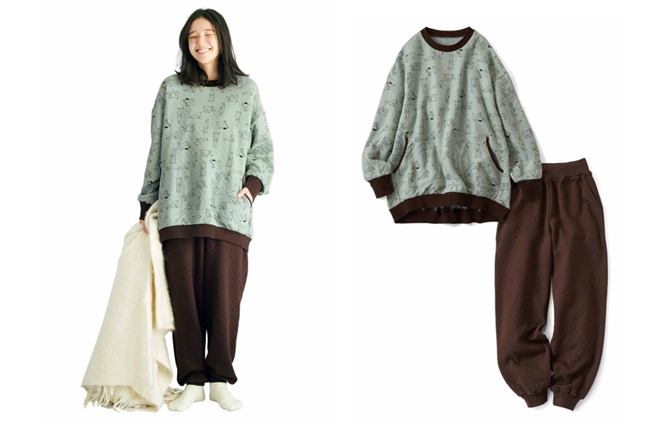 やわらかなコットン100%のキルティングのカットソー生地に、旭山動物園でおおらかに暮らすホッキョクグマの姿がプリントされたパジャマ。ホッキョクグマのデザインはイラストレーターのyamyamさん。やさしい着心地と落ち着きのあるイラストは、眠るときはもちろん、おうちでくつろぐときにもぴったりです。トップスはホッキョクグマをイメージしたコクーンシルエットになっていて、着ているだけでリラックスできそうです。