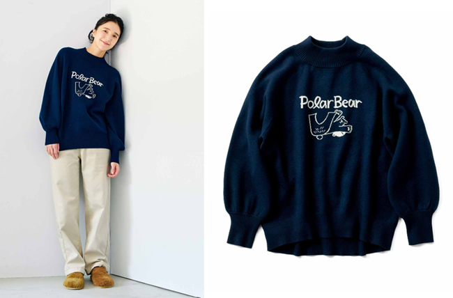 旭山動物園でごきげんに暮らすホッキョクグマの姿をジャカードで編みたてた、もっちりやわらかなニットトップスです。イラストレーターのyamyamさんのイラストがポイント。ホッキョクグマをイメージしたゆったりとした着心地は、パンツでもスカートでも好相性。ふんわりシルエットでこなれた雰囲気に仕上げてくれます。