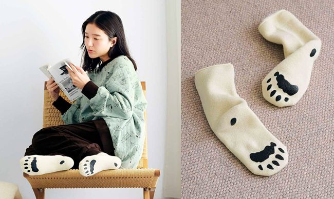 【NEW】旭山動物園・ボルネオの森応援商品 Live in comfort ホッキョクグマの肉球柄のあたたかソックス〈アイボリー〉