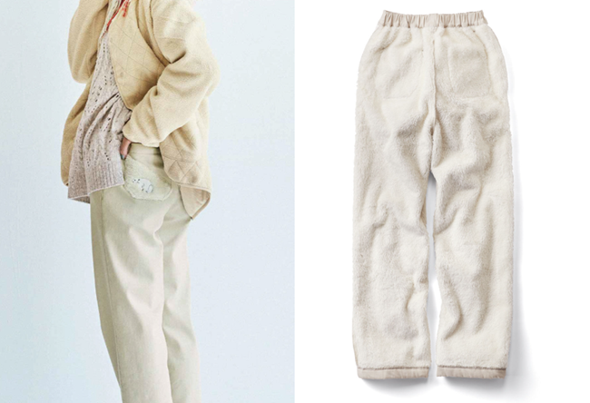 ◆リブ イン コンフォート 冬の動物園でも寒さ知らず! ホッキョクグマみたいなふわふわ 裏ボアワイドパンツ〈アイボリー〉