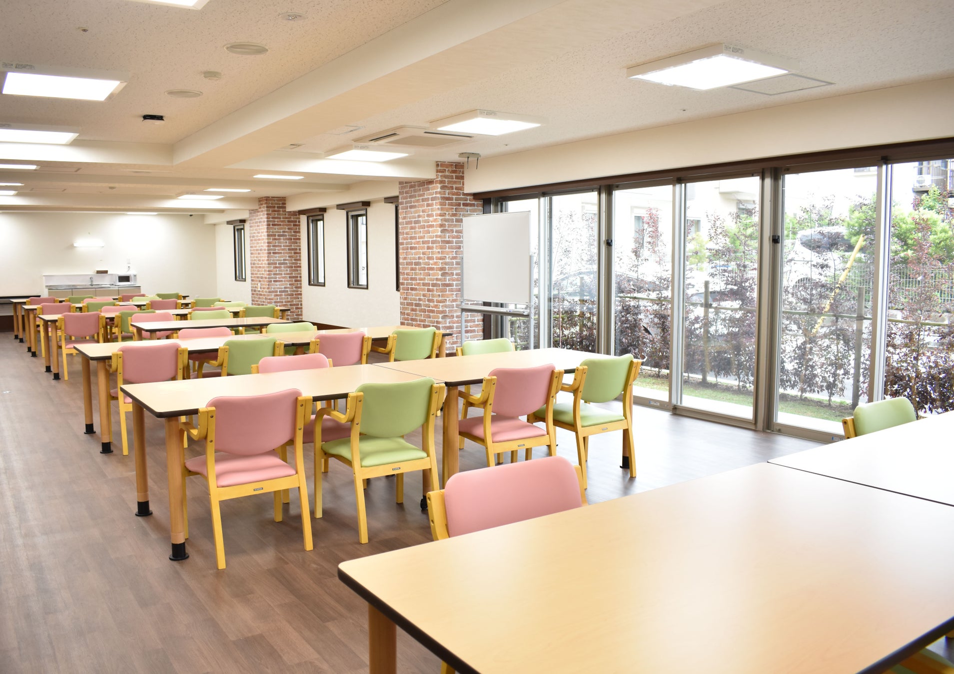 共用施設/食堂、浴室(一般浴・機械浴・個浴)、ヘルパーステーション、健康管理室、談話コーナー、理美容室、ファミリールーム、相談室、事務室、洗濯室、トイレ、エレベーター