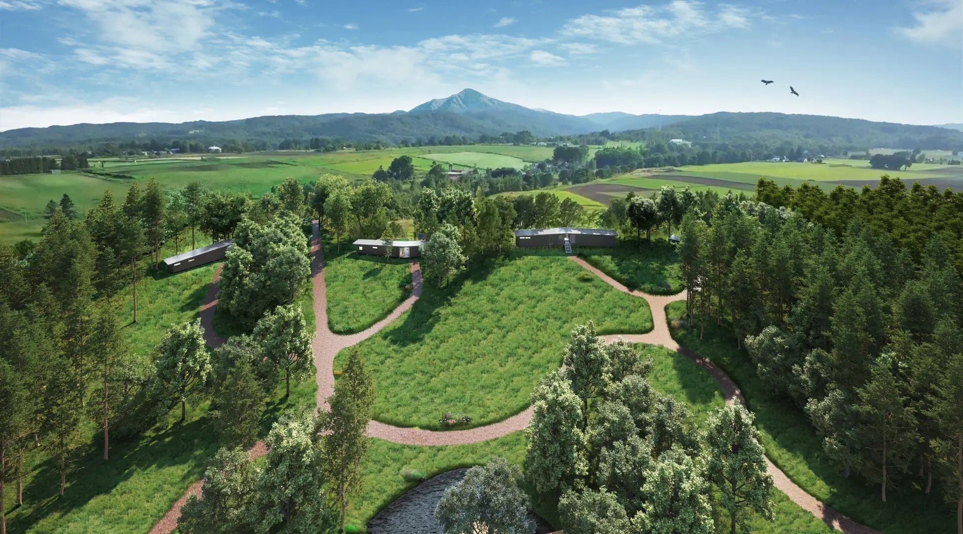 北海道・札幌から車で約30分の地、輪厚(ワッツ)に位置するSONEKAは、77,000㎡もの広大な森を再生した敷地に、わずか4棟のヴィラが点在するプライベート・リゾート。