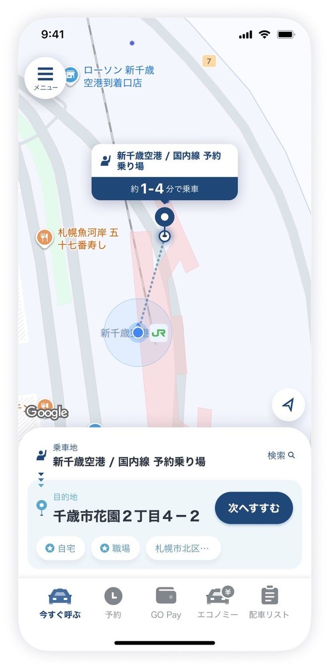 新千歳空港は、2024年度の旅客数が過去最多を記録しており、今後も国内線・国際線ともに成長が期待される空港です。『GO』は、全世界202の国と地域のお客様にご利用いただいているNo.1タクシーアプリです。この度、新たに新千歳空港にてアプリ注文が可能となる実証実験を開始します。