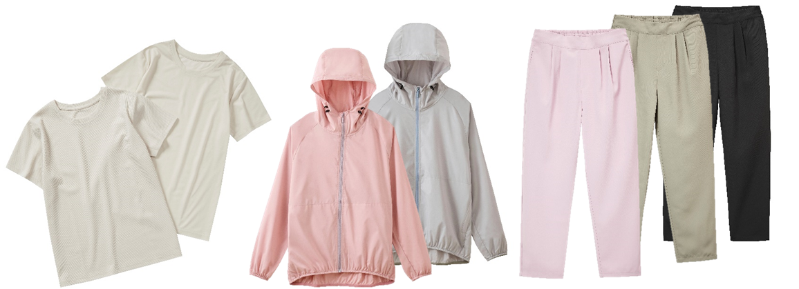 (左)DAYSTシャツ2P税込980円 (中央)DAYSシェルジャケット税込980円 (右)DAYSタックパンツ税込980円