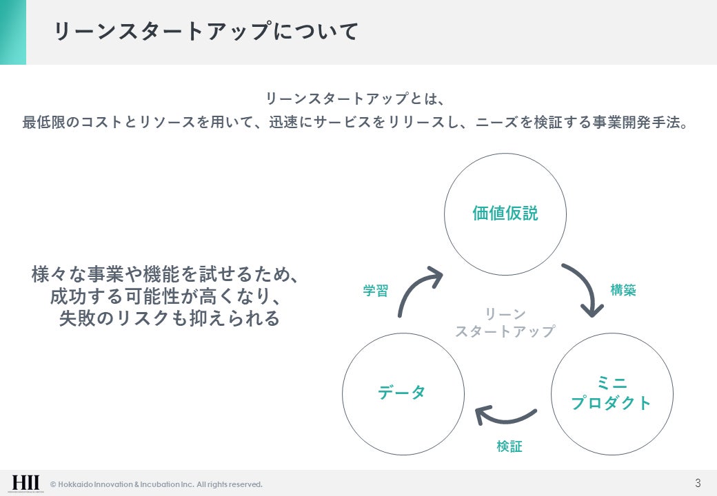 リーンスタートアップとは、最低限のコストとリソースを用いて、迅速にサービスをリリースし、ニーズを検証する事業開発手法です。