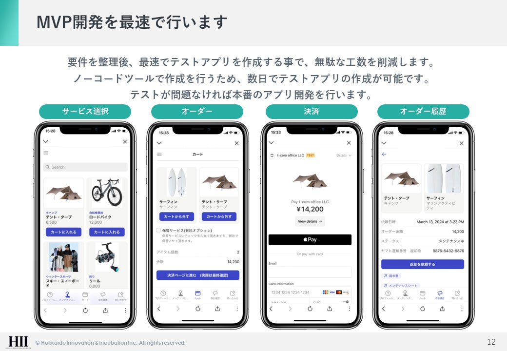 ノーコードツールで作成を行うため、数日でテストアプリの作成が可能です。